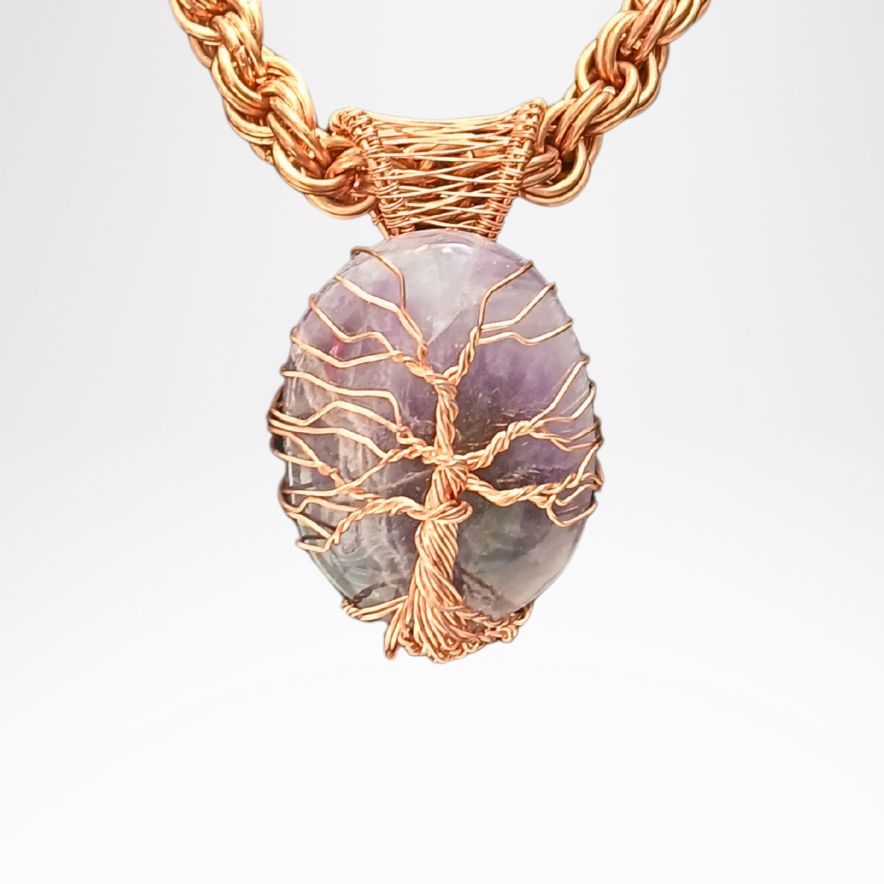 Hand-crafted Copper wrapped Amethyst Tree of Life Pendant